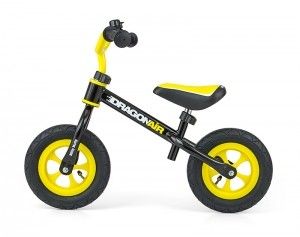 Rowerek biegowy Dragon od firmy Milly Mally nie ma pedałków ani hamulca, dzięki czemu dziecko może się skupię na nauce utrzymania równowagi.