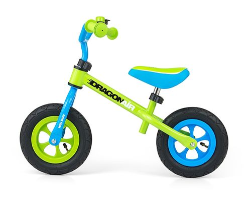 Rowerek biegowy Dragon od firmy Milly Mally nie ma pedałków ani hamulca, dzięki czemu dziecko może się skupię na nauce utrzymania równowagi.