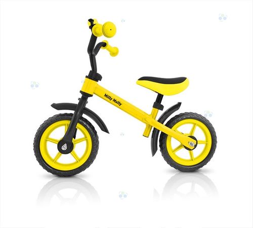 Rowerek biegowy Dragon od firmy Milly Mally nie ma pedałków ani hamulca, dzięki czemu dziecko może się skupię na nauce utrzymania równowagi.