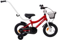 Rowerek BMX Junior w kolorze czerwonym na 12 calowych kołach.