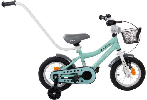 Rowerek BMX Junior w kolorze turkusowym na 12 calowych kołach.