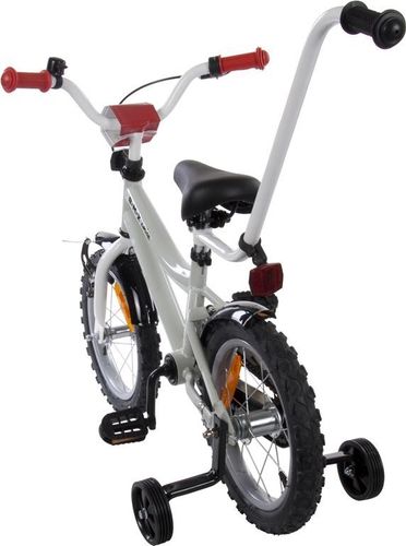 Rowerek wyposażony jest w hamulec przedniego koła, osłonę łańcucha, przedni i tylni odblask, profilowane siodełko, popychacz, błotniki, odkręcane kółka boczne i dzwonek.