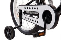 Rowerek BMX Junior w kolorze czarnym na 16 calowych kołach.