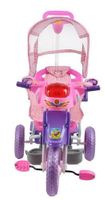 Posiada składany daszek, który znakomicie chroni przed słońcem, rączka do prowadzenia umożliwia kontrolowanie i pomaganie dziecku przy jeździe. Praktyczny, demontowany podnóżek na stopy, profilowane siodełko z oparciem, wbudowane mrugające podczas grania światło i melodyjki.