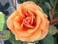 Pokrój krzaczasty, osiąga około 60 cm wysokości. Liście ciemnozielone, błyszczące. Wytwarza duże, delikatnie pachnące kwiaty w kolorze pomarańczowym. Kwitnie obficie od czerwca, powtarzając kwitnienie aż do późnej jesieni. Potrafi wytworzyć nawet do kilkudziesięciu kwiatów na jednym pędzie.