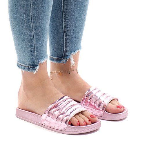 Różowe damskie klapki, wykonane z gumy, idealne na basen, plażę oraz do codziennego użytkowania.