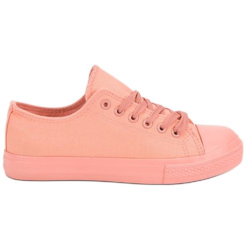 Tekstylne trampki Sport to wygodne buty dla kobiet, które lubią bawić się modą. Całe trampki są w kolorze różowym - łącznie z niewielką platformą o wysokości 3 cm i sznurówkami. Pastelowy kolor tych wygodnych butów sprawia, że będą one pasować do wielu różnych stylizacji, dodając im lekkości i uroku.