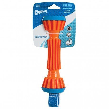 RUGGED BUMPER to pierwszy twardy aport od Chuckit! RUGGED BUMPER został zaprojektowany tak, by sprostać ‘ostrej’ zabawie i psom o silnych szczękach. Rdzeń z mocnego tworzywa zapewnia sztywność, a żebrowana powierzchnia i specjalny kształt ułatwia psu pochwycenie zabawki. Zabawka unosi się na wodzie.