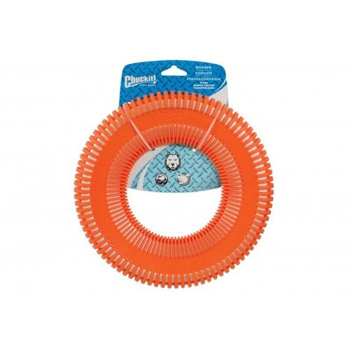 RUGGED FLYER to pierwsze twarde frisbee od Chuckit! Aport został zaprojektowany tak, by sprostać ‘ostrej’ zabawie i psom o silnych szczękach. Rdzeń z twardego tworzywa zapewnia sztywność, a żebrowana powierzchnia z gumy TPR ułatwia psu pochwycenie zabawki. Zabawka unosi się na wodzie.