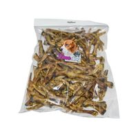 Naturalna przekąska dla psów. Skład surowcowy: 100% naturalne stopki kurze. Składniki analityczne: Białko surowe: 49,90% Tłuszcz surowy: 33% Popiół surowy: 7,80% Włókno surowe: 2% Wilgotność: 12.0% Opakowanie zawiera 50 szt. stopek naturalnych.
