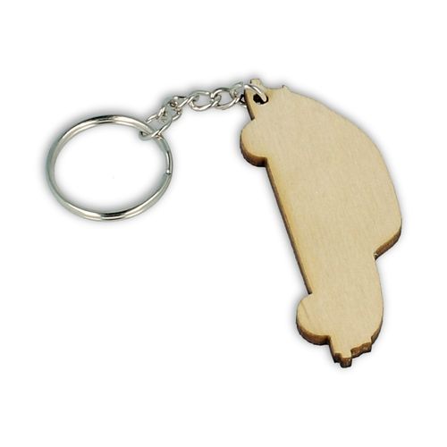 Drewniany brelok w kształcie samochodu.