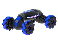 Sprawdź, jak to auto potrafi się poruszać!Aż3 trzy możliwości sterowania pojazdem:za pomocą gałek na pilocieprzy pomocy przycisków na pilocieza pomocą gestów(!) z pilotem zegarkiem Pilot/pad wyposażony został w 17 czerwonych przycisków umożliwiających:zdalne sterowanie jazdą włącznie z przyciskami pozwalającymi na akrobacjezmianę kształtu autakontrolę muzyki - zmianę piosenki, regulację głośnościdźwięk klaksonuprogramowanie jazdywłączenie trybu demoNiepozornypilot zegarek to dodatkowa frajda! Bardzo czuły pilot zakładany na dłońpozwala sterować autem za pomocą gestów