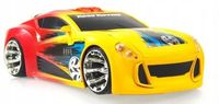 Fantastyczny samochód posiadający 2 przyciski działania aktywujące niebieskie światła, muzykę, silnik i dopalacz. W podwoziu umieszczono podnośnik, dzięki któremu auto unosi się na tylnych kołach. Twoje ulubione pojazdy z funkcją napędu rakietowego. Jedź na jednym kole i włącz rakietowe dopalanie po aktywacji napędu do przodu. Naciskaj przyciski, aby włączyć światła, realistyczne odgłosy i wspaniałą muzykę.