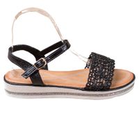 Damskie sandały Renda to buty o metalicznym wykończeniu w kolorze czarnym. Będą one odpowiednim wyborem na różnego rodzaju imprezy, doskonale sprawdzą się też na co dzień. Materiał, który posłużył do wykonania obuwia oraz wkładek, to skóra ekologiczna. Model ten ma 3-centymetrowe platformy, które zapewniają wygodę.