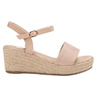 Sandały te wykonane są z ekologicznego zamszu w kolorze jasnego brązu. Buty mają 7-centymetrowe koturny ozdobione sznurkiem oraz 3-centymetrowe platformy. Dzięki temu są stabilne i wygodne. Sandały zapinane na sprzączkę świetnie sprawdzą się na co dzień, jako doskonałe uzupełnienie różnych stylizacji.