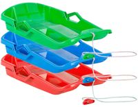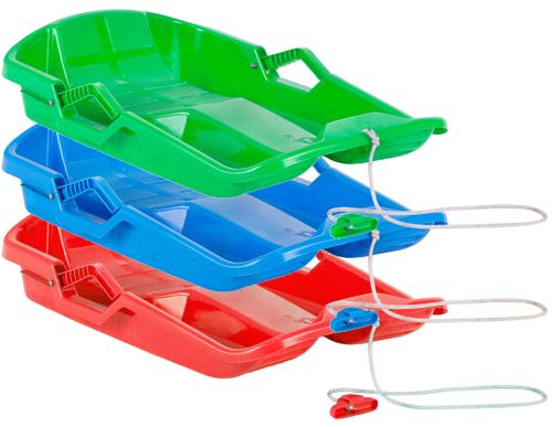 Wykonane z wytrzymałego plastiku odpornego na warunki zimowe. Odporne na pękanie i niską temperaturę. Wyposażone w sznurek do ciągnięcia, posiadają dwa uchwyty i ergonomiczne wyprofilowane siedzisko, umożliwiające wygodną i bezpieczną pozycję podczas zabawy na śniegu. Specyfikacja produktu: Ergonomiczny kształt 2 x Hamulec Lekka konstrukcja Sznurek, dł. 100 cm Odporne na pękanie i niskie temperatury (do -20°C) Obciążenie : max 60 kg Wymiary: Długość: 65 cm Szerokość: 40 cm Wysokość: 15 cm