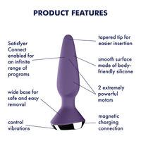 Oprócz tego Plug-ilicious 1 może być sterowany za pomocą nowej aplikacji Satisfyer Connect. Aplikacja nie tylko umożliwia obsługę urządzenia przez Internet z dowolnego miejsca na świecie, np. przez partnera, lecz również tworzenie własnych programów wibracji lub połączenie aplikacji ze swoim kontem Spotify. Możliwości są nieograniczone! Aplikacja jest dostępna na Androida, iOS oraz Apple Watch.