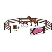 Seria Farm Life zawiera okazy zwierząt hodowanych w gospodarstwach na całym świecie.Schleich Padok Figurka + Zagroda 42192 [img-314079-left-home_default] Schleich to niemiecka firma, która zajmuje się produkcją zabawek od wczesnych lat 60-tych. W latach 80-tych wprowadzono figurki zwierząt, które od tego czasu są wykonywane z najwyższą dbałością o wszystkie szczegóły, starannie odlane oraz ręcznie pomalowane oddają rzeczywisty wygląd zwierzęcia.Materiały z których są produkowane figurki Schleich zostały wyselekcjonowane i przebadane tak, aby spełniać najwyższe normy bezpieczeństwa.Seria Farm Life zawiera okazy zwierząt hodowanych w gospodarstwach na całym świecie. Teraz dzięki figurkom Schleicha i licznym akcesoriom dodatkowym, jak chociażby: stajnie, zagrody czy wóz z zaprzęgiem, mali miłośnicy przyrody mogą stworzyć swoją własną FARMĘ z prawdziwego zdarzenia, w zaciszu własnego pokoju. W zestawie:- 1 x derka i kantar (42167)- 1 x zestaw pasz (42115)- 1 x zrebie rasy trakenskiej (13758)- 1 x klacz rasy trakenskiej (13757)- 1 x niebieskie wiaderko- 8 x płotek