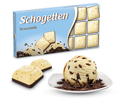 La dolce vita. Schogetten Stracciatella to pyszny hołd dla włoskich klasycznych lodów. Biała czekolada jest przyprawiona chrupiącymi prażonymi kakao i spoczywa na bazie pół gorzkiej czekolady. Harmonijna kompozycja delikatnego i słodkiego smaku z nutą wanilii wie, jak uwieść.