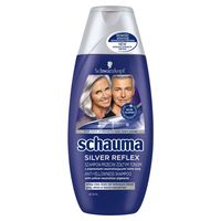 Formuła szamponu Schauma Srebrne Refleksy opiera się na działaniu pigmentów o chłodnych barwach, które neutralizują żółtawe zabarwienie na siwych lub farbowanych włosach blond.