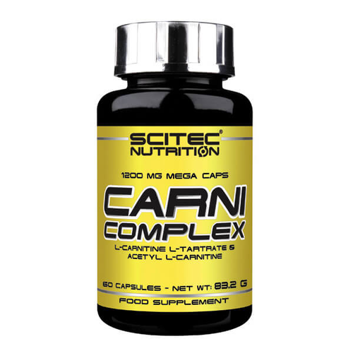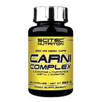 Scitec Nutrition - Carni Complex dostarcza 2 najpopularniejsze formy L-karnityny razem! W 1 kapsułce masz 1000 mg L-karnityny, L-winianu oraz acetylowanej wersji, L-karnityny acetylowej (ALC), który ma nieco inną charakterystykę. Substancje przyśpieszają redukcję tkanki tłuszczowej poprzez transport komórek tłuszczowych do mitochondriów i przekształceniu ich w energię.