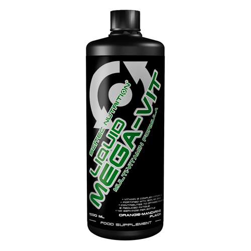 Scitec Nutrition - Liquid Mega-Vit - zestaw witamin wzbogaconych cynkiem w postaci płynu. Witaminy wpływają na wiele procesów biologicznych w organizmie, a cynk bierze udział w procesie podziału komórek, co przyczynia się do szybszej syntezy protein oraz utrzymania prawidłowego poziomu testosteronu. Scitec Nutrition - Liquid Mega -Vit wspomaga układ odpornościowy, poprawia wzrok oraz metabolizm tłuszczy i węglowodanów.