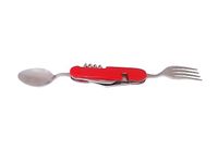 Niezbędnik posiada aluminiowy, rozłączany na dwie części korpus, co umożliwia korzystanie z noża i widelca w tym samym czasie.