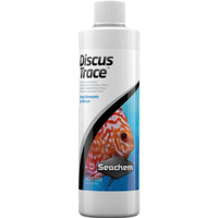 Preparat jest źródłem wielu pierwiastków śladowych, niezbędnych dla prawidłowego rozwoju i zdrowia ryb. W przeciwieństwie do zwierząt lądowych, ryby pobierają substancje odżywcze nie tylko z pokarmu, ale także przyswajają je ze środowiska. Zawartość pierwiastków śladowych w wodzie obniża się, ponieważ są one wykorzystywane przez żywe organizmy, a także ulegają utlenianiu lub wytrącaniu. Dlatego tak ważne jest ich regularne uzupełnianie. „Discus Trace” zawiera tylko te pierwiastki, które są rzeczywiście wykorzystywane przez ryby. Sól akwarystyczna jest często wykorzystywana do uzupełniania niedoborów soli różnych pierwiastków w wodzie. Niektóre ryby to tolerują, inne – nie. Dyskowce, podobnie jak rośliny, są szczególnie wrażliwe na podwyższony poziom sodu w wodzie. „Discus Trace” jest starannie opracowanym preparatem, wolnym od sodu, zawierającym pierwiastki śladowe. Jego zadaniem jest uzupełnianie niedoborów pierwiastków śladowych i ultraśladowych, niezbędnych dla prawidłowego rozwoju i zdrowia ryb. Sposób użycia: Zawartość 1 nakrętki (5ml) na każde 80l wody, raz lub 2 razy w tygodniu. Skład: Cynk (min) 0.007 mg Fluor (max) 0.001 mg Jod (min) 0.1% Magnez (min) 0.792% Mangan (min) 0.002 mg Miedź (min) 0.032 mg Potas (min) 0.1% Selen (min) 0.000006 mg Wapń (max) 2.64% Wapń (min) 2.40% Żelazo (min) 0.007 mg Powyższe wartości podano dla 1g produktu. Skład: chlorek wapnia, chlorek magnezu, jodek potasu, siarczan miedzi, siarczan żelaza, siarczan cynku, siarczan manganu, fluorek sodu, chelat aminokwasowy selenu.