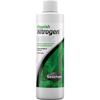 Flourish Nitrogen to skoncentrowana (15 000mg/l) mieszanina związków będących źródłem azotu. Dostarcza tego pierwiastka zarówno w formie azotanu, jak i preferowanego przez rośliny jonu amonowego. W czasie stosowania preparatu nie dochodzi do wydzielania się wolnego amoniaku, ponieważ znajdujące się w nim jony amonowe występują w formie związanej i są uwalniane dopiero wewnątrz komórek roślinnych. Flourish Nitrogen dostarcza też azotu w postaci azotanów dla gatunków, które są w stanie je wykorzystywać. Nie zawiera fosforu. Sposób użycia: Początkujący: 2,5ml (pół nakrętki) na każde 160 litrów wody w zbiorniku, 2 razy w tygodniu lub w miarę potrzeby, kiedy wystąpią objawy niedoboru azotu (chloroza, karłowacenie roślin). Dawka ta podwyższa poziom azotu o tyle samo, co roztwór azotanów o stężeniu 1mg/l Zaawansowani: By przyspieszyć wzrost roślin zaleca się stosowanie odpowiednio wyższych dawek (z zachowaniem właściwej proporcji). Pomocny może okazać się wzór: 0,06vn=m, gdzie v to objętość zbiornika w litrach, n planowany wzrost poziomu azotu, m – objętość preparatu Flourish Nitrogen. Ponieważ połowa azotu we Flourish Nitrogen jest w formie azotanu, wiarygodną informację o poziomie tego pierwiastka można otrzymać mnożąc wartość uzyskaną podczas testu na obecność azotanów przez 2. Skład: Azot całkowity1,5% Rozpuszczalny tlenek potasu (K2O)2%