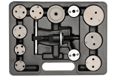 W zestawie znajduje się 11 adapterów dostosowanych do wielkości tłoczków hamulcowych w większości europejskich i azjatyckich samochodów osobowych