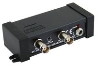 Podłączenie separatora video SV-1000P według poniższego schematu pozwala wyeliminować zakłócenia powstałe na skutek różnicy potencjałów pomiędzy masą kamery a masą monitora. Napięcie wynikające z tej różnicy potencjałów może się dodawać do napięcia sygnału użytecznego. Są to zakłócenia o niskiej częstotliwości objawiające się np. czarnymi pasami wolno przesuwającymi się w pionie.