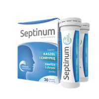 Składniki wyrobu medycznego Septinum również nawilżają i łagodzą podrażnienia błon śluzowych wywołane suchością w jamie ustnej, chrypką, kaszlem, przebywaniem w klimatyzowanych pomieszczeniach czy koniecznością pracy głosem (lektor, wykładowca, wokalista).