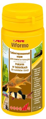sera Viformo to pokarm podstawowy w postaci starannie wyprodukowanych tabletek dla ryb sumokształtnych oraz innych ryb przydennych poszukujących pokarmu na dnie. Odżywcze i łatwostrawne tabletki są chętnie zjadane. Zbilansowana kompozycja, wzbogacona kiełżem i algami, wspiera zdrowy rozwój oraz żywotność zwierząt. Sumokształtne z małymi pyszczkami (np. sumiki pancerne lub bocje) mają zapewnione odpowiednie pożywienie, ponieważ kiedy ryby przeszukują dno, tonące tabletki rozpadają się na niewielkie kawałki doskonałe na jeden kęs. Kąski te pozostają zwarte i nie powodują zmętnienia wody.