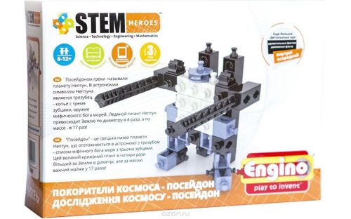 Zestawy klocków STEM Heroes, seria Eksploratorzy kosmosu, umożliwiające zbudowanie 1 modelu z każdego zestawu, ulotka informacyjna dotycząca tematyki danego zestawu, bezpłatna aplikacja do ściągnięcia z Internetu. Zestawy łączą się, po zebraniu trzech zestawów można zbudować model combo'.