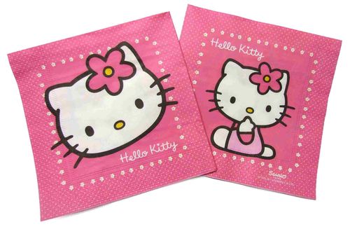 Opakowanie zawiera 15 sztuk serwetek papierowych w kolorze różowym z nadrukiem kotka z bajki Hello Kitty. Produkt licencjonowany.