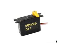 Wysokiej jakości mikro serwo Dymond D-47, masa 4,7g, moment 1,1kg/cm, ekstremalnie niskie zużycie energii. Rozmiary 17 x 22 x 8 mm, uniwersalny konektor.