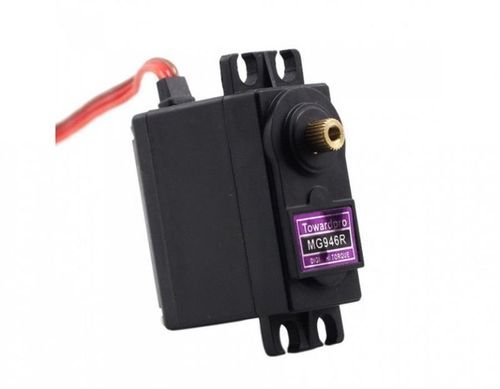Tower Pro MG946R to bardzo mocne serwo typu standard, szybsze od starszych modeli MG995, MG995R, MG945 i MG945R. Posiada podwójne łożyskowanie oraz metalowe tryby.