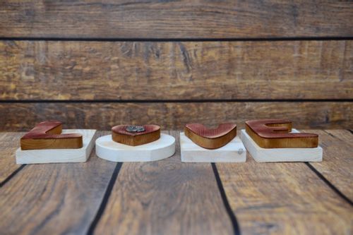 Litery wykonane ręcznie z litego drewna. Dodatkowa dekoracja w literze "O" - posrebrzany pies z kolekcji ARTDOG