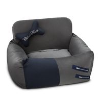 Legowisko Freestyle do samochodu ma wyjątkowo drapieżny styl, idealny dla indywidualisty. Połączenie eleganckiej szarości z granatem to typowa klasyka, która nigdy nie wyjdzie z mody. Pikowany materiał dodaje nonszalancji, a ozdobne suwaki sprawiają, że siedzisko nadaje się nawet do sportowego auta. Uroku dodaje także przyczepiana na rzep kostka z logo marki, która może także służyć jako zabawka. Legowisko uszyte jest z praktycznych materiałów które łatwo się czyści i mają zmniejszoną absorbcję brudu i wody. Dodatkowo poducha jest wyjmowana, a boki mają wszyty suwak wokół całości. Dzięki temu jeśli pies lub kot będą miały chorobę lokomocyjną, z łatwością wypierzesz legowisko.