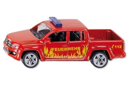 Volkswagen VW Amarok Straż Pożarna Pick-up. Niemiecka marka Siku specjalizuje się w produkcji modeli pojazdów tj. samochodów, pojazdów rolniczych i budowlanych, motorów, samolotów i innych. Wszystkie zabawki są gwarancją najlepszej jakości, posiadają ruchome elementy oraz gumowe koła. Modele wykonywane są z precyzyjną dbałością o szczegóły, dzięki czemu dokładnie odwzorowują oryginały. Modele Siku są doskonałą propozycją zarówno dla dzieci, jak i kolekcjonerów.