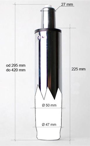 Siłownik umożliwiający regulację wysokości fotela. Model siłownika 225, kolor chrom.