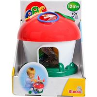 ABC Grzybek Sorter Kształtów posiada 4 elementy w różnych kształtach do dopasowania do otworów w grzybku.