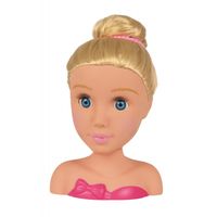 Głowa posiada długie blond włosy i niebieskie oczy.
