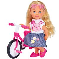 Laleczka Evi wybiera się na wycieczkę. Jej piękny różowy rowerek jest już gotów do jazdy.