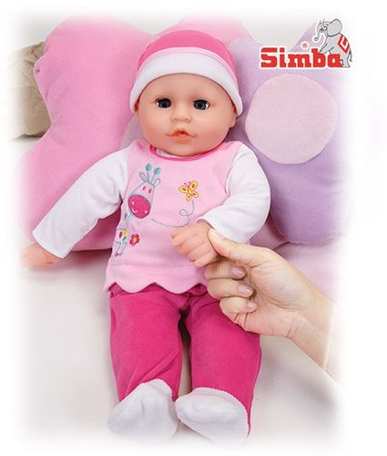 Każda mała dziewczynka powinna posiadać lalkę, aby mogla przytulać i opiekować się nią. Maluszek ubrany w słodki strój posiada dobraną kolorystycznie czapeczkę, która dodaje mu uroku. Laleczka podczas karmienia porusza ustami, jakby naprawdę jadła. Gdy naciśniemy jej rączkę wydaje dźwięki charakterystyczne dla bobasa. Po jedzeniu i zabawie kiedy jest już bardzo zmęczona zamyka oczy i słodko zasypia. Śliczna lalka gaworząca firmy simba wydaje z siebie aż 20 dźwięków. Wykonana z miękkiego i przyjemnego materiału stworzona jest do przytulania. Zestaw zawiera lalkę, smoczek oraz butelkę do karmienia.
