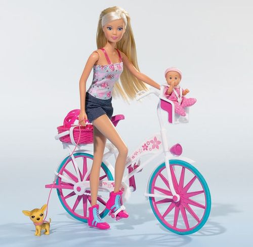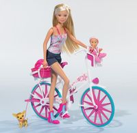 Steffi z rowerem zabiera swojego małego bobasa na piknik za miastem. Wyjeżdżają wczesnym rankiem na rowerze, by skorzystać z pierwszych cieplejszych dni wiosny. Do pięknego roweru doczepiono siedzonko by bobas poczuł się komfortowo podczas podróży, a dla bezpieczeństwa dołączono kaski. Z koszyczka z tyłu roweru wygląda ulubiony zwierzak Steffi, piesek Chi Chi. Wszyscy dokonale się bawią!