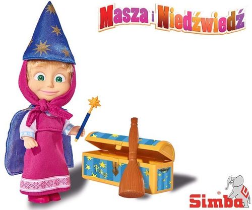 Nowość od firmy Simba.Lalka Masza to ciekawa świata dziewczynka o krótkich blond włosach i dużych zielonych oczach znana już wielu dzieciom z serialu Masza i Niedźwiedź.