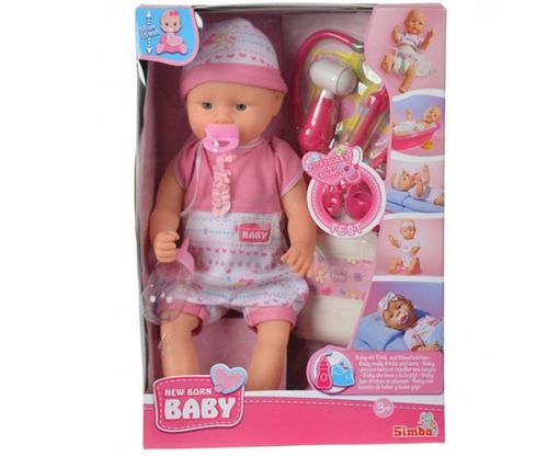 Simba Lalka siusiająca Bobas 38 cm z nocnikiem i zestawem akcesoriów lekarskich.