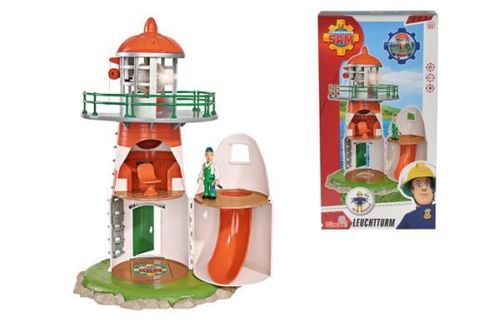 Na latarni Strażaka Sama zawsze coś się dzieje , Mike z najwyższego poziomu widzi przez swój teleskop wszystko co się dzieje na morzu. Dzięki światłu z latarni może poprować statki w odpowiednim kierunku. 3-poziomowa latarnia morska ze znajej bajki Strażak Sam wyposażona wydaje efekty świetlne oraz dźwiękowe. W zestawie znajduje się figurka Mike'a Flooda, w białej bluzie, zielonych ogrodniczkach i niebieskiej czapce z daszkiem. Frontowe drzwi Latarni mogę być otwierane oraz zamykane. Wysokość zabawki to aż 40 cm. 2x baterie 1.5V LR03 i 3x 1.5V LR44 są zawarte w zestawie. Dla dzieci od 3 roku życia.