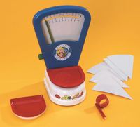 Tradycyjna waga sklepowa, idealnie sprawdzi się podczas zabawy w sklep. Dzięki załączonej tacy wszytko będzie można z łatwością zważyć. W zestawie znajdują się także papierowe torebki i uchwyt, żeby można je było zamocować na wadze. Zabawa rozwija kreatywność i wyobraźnię.